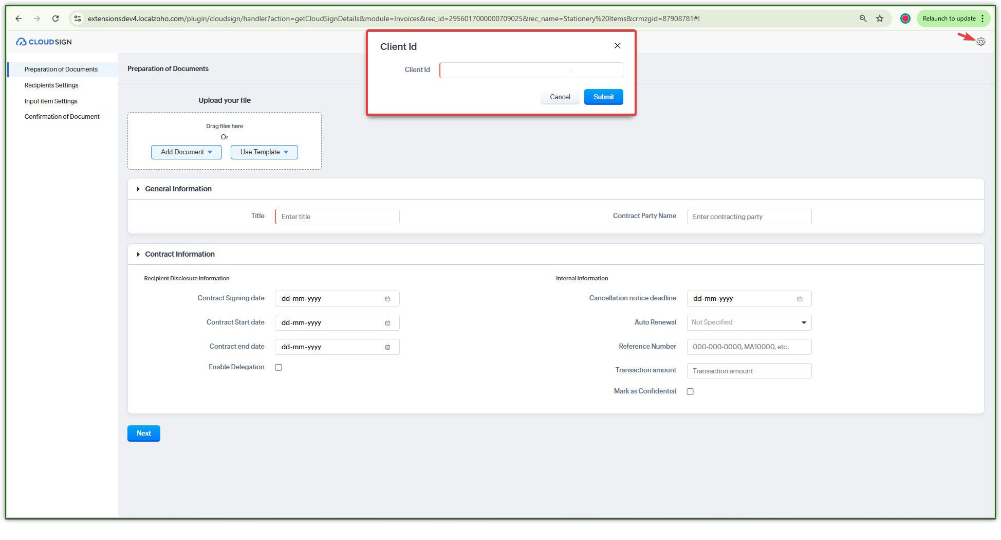 To connect CloudSign with Zoho CRM, you need your Client ID from CloudSign.