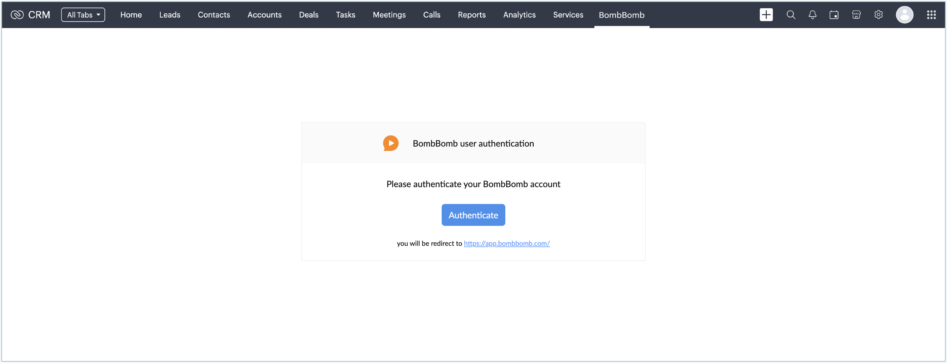 You will be redirected to the BombBomb settings page.