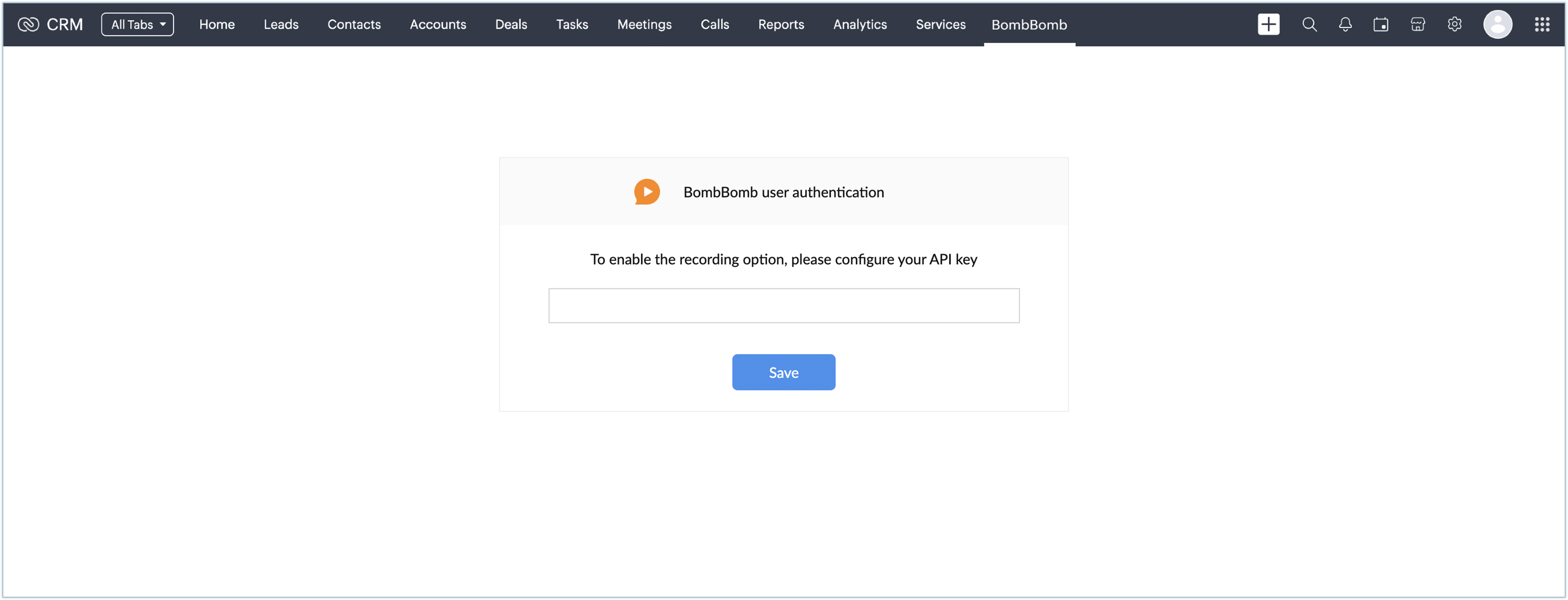In the following screen, provide the API Key fetched from your BombBomb account and click Save.
