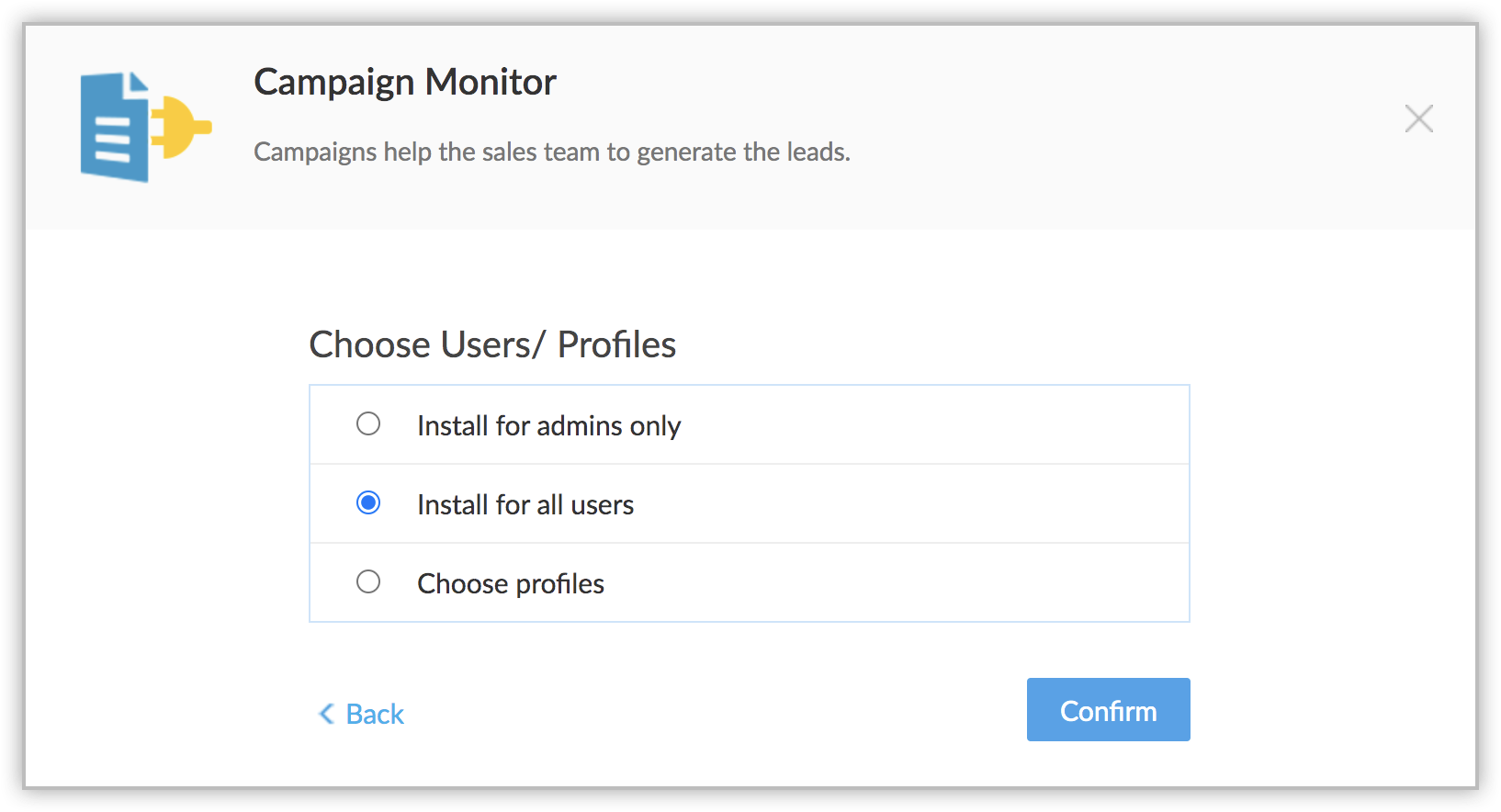 1. Install for admins only: The extension will only be installed in CRM for users with an administrator profile.