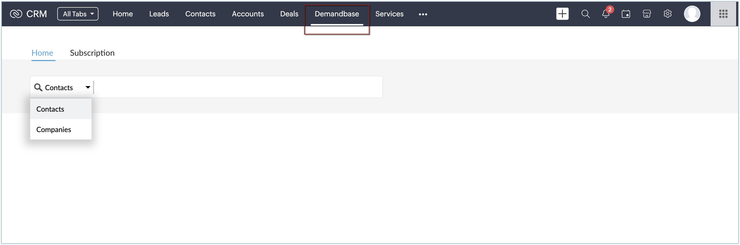In Demandbase, the business contacts are stored under two categories: contacts and companies. You can search for a contact or company in Demandbase right from the Zoho CRM after selecting the appropriate category.