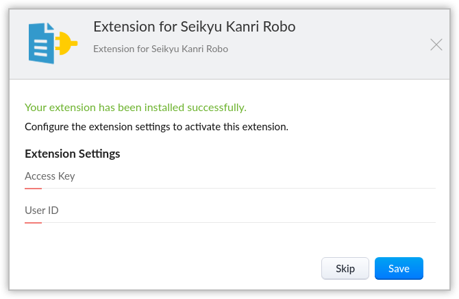 You can either go to the Zoho Marketplace and install the Seikyu Kanri Robo Payment extension, or log in to your Zoho CRM account and install it.  To install the extension: