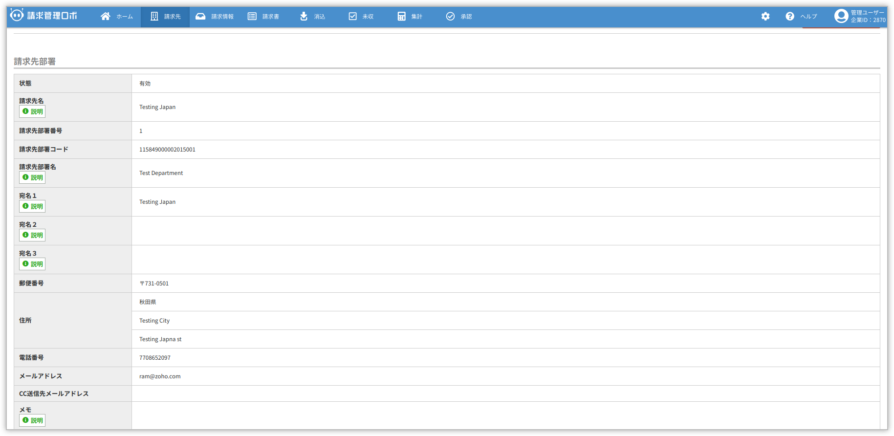 Once successfully registered, the account and invoice details will be added to Seikyu Kanri Robo Payment.