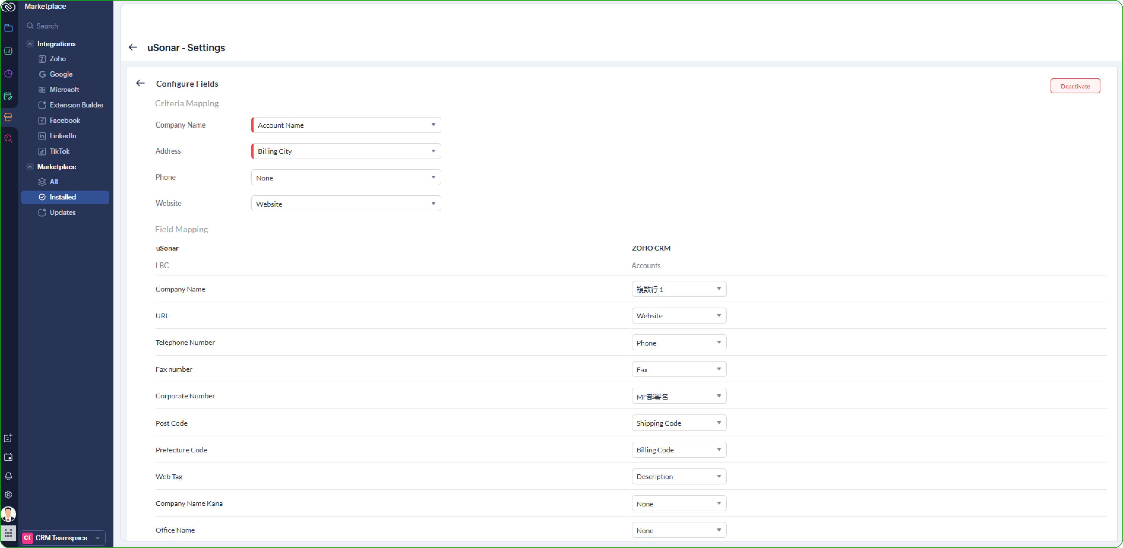 - In field mapping, data from uSonar will overwrite the corresponding fields in Zoho CRM. If a uSonar field is blank but the mapped CRM field contains a value, that value will be overwritten with a blank during integration process.