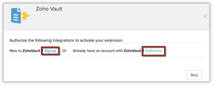 You can install the Zoho Vault extension either from the Zoho Marketplace or from within your Zoho CRM account.