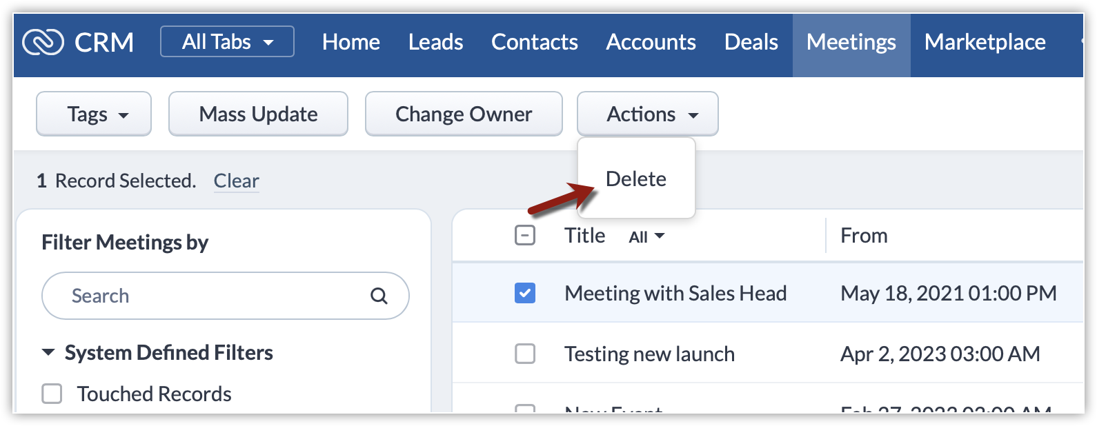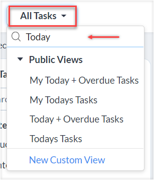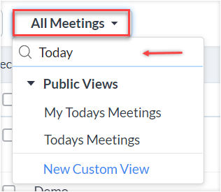 In the Meetings, Calls, and Tasks modules, you can create a default view for Today's Meetings, Today's Calls, and Today's Tasks.