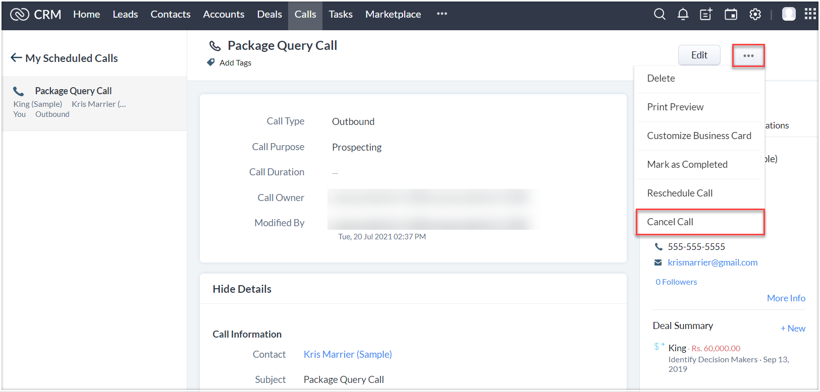 Choose Scheduled Calls .