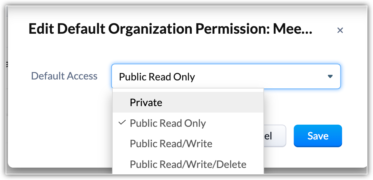 To view all the meetings that are created in your CRM, you need to set up data sharing rule for meetings to any one of the following depending upon what type of permission is required.