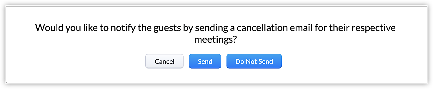 - Click Cancel and a pop-up will appear asking if you want the meeting cancellation notification to be sent to the participants. Choose Send or Do Not Send.