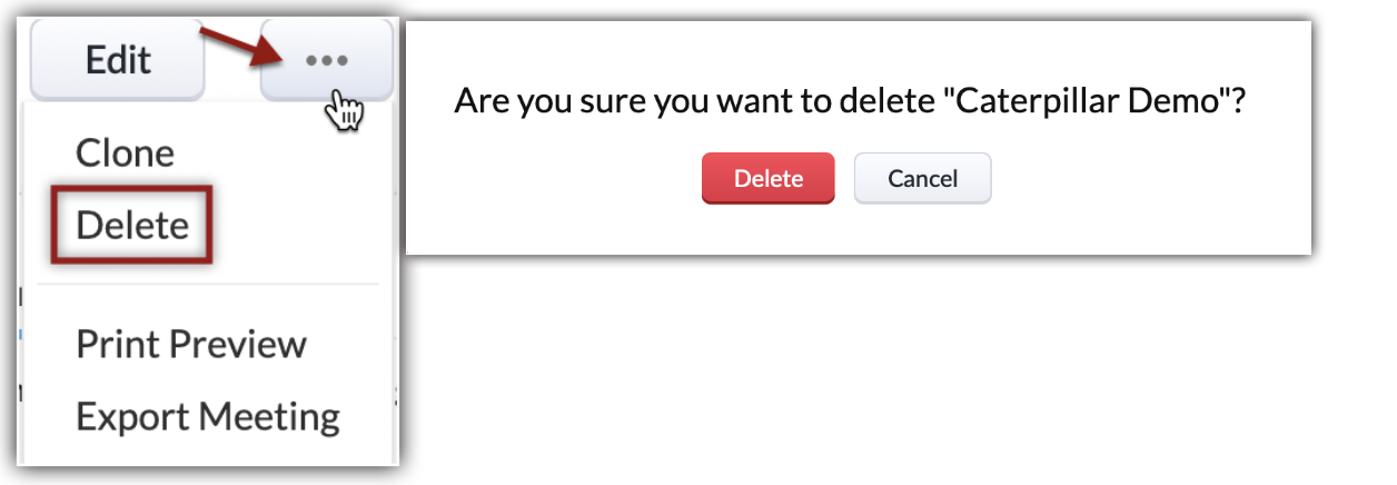 - Click Delete . A pop-up will appear asking if you are sure to delete the meeting. Click Delete .
