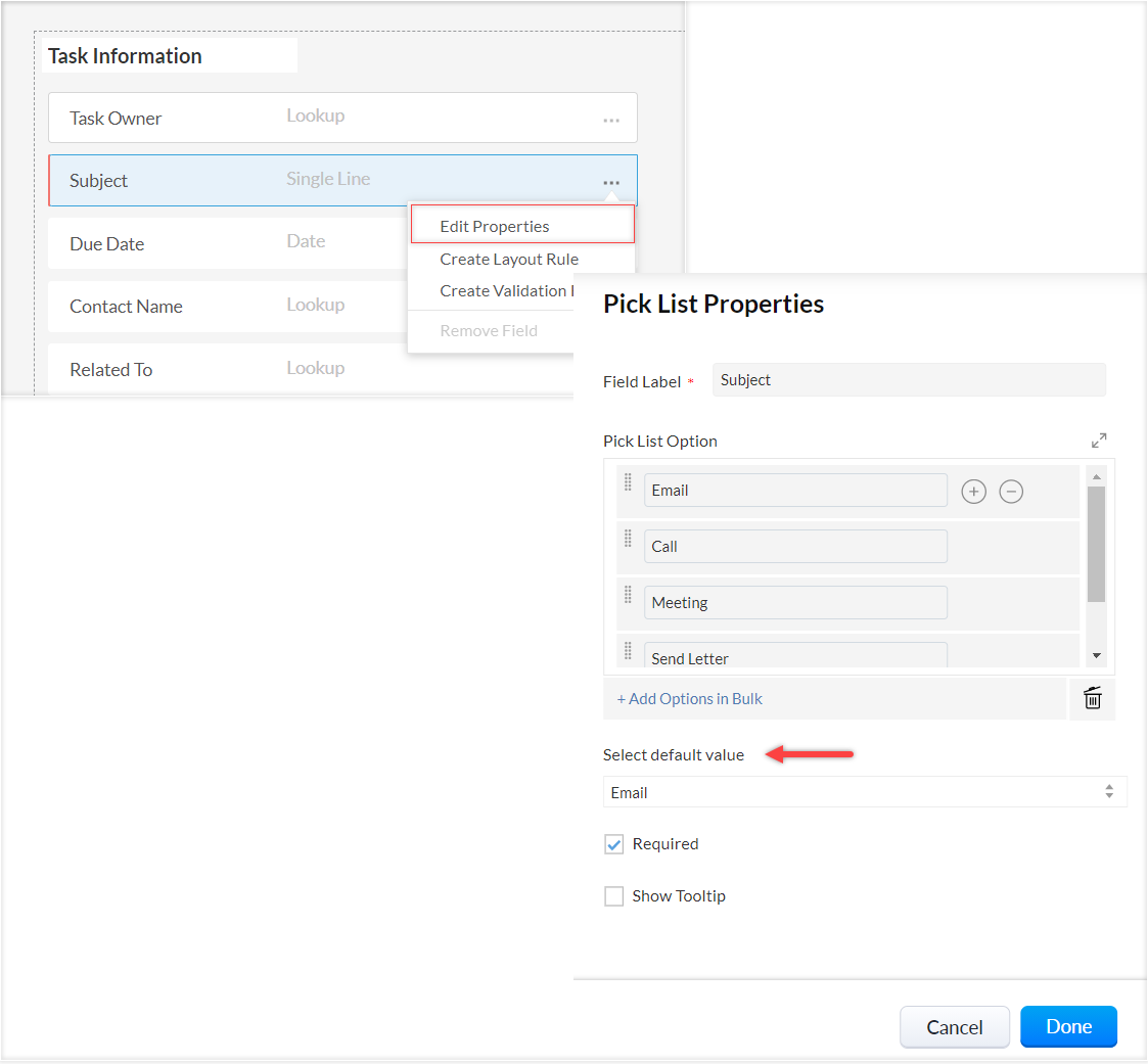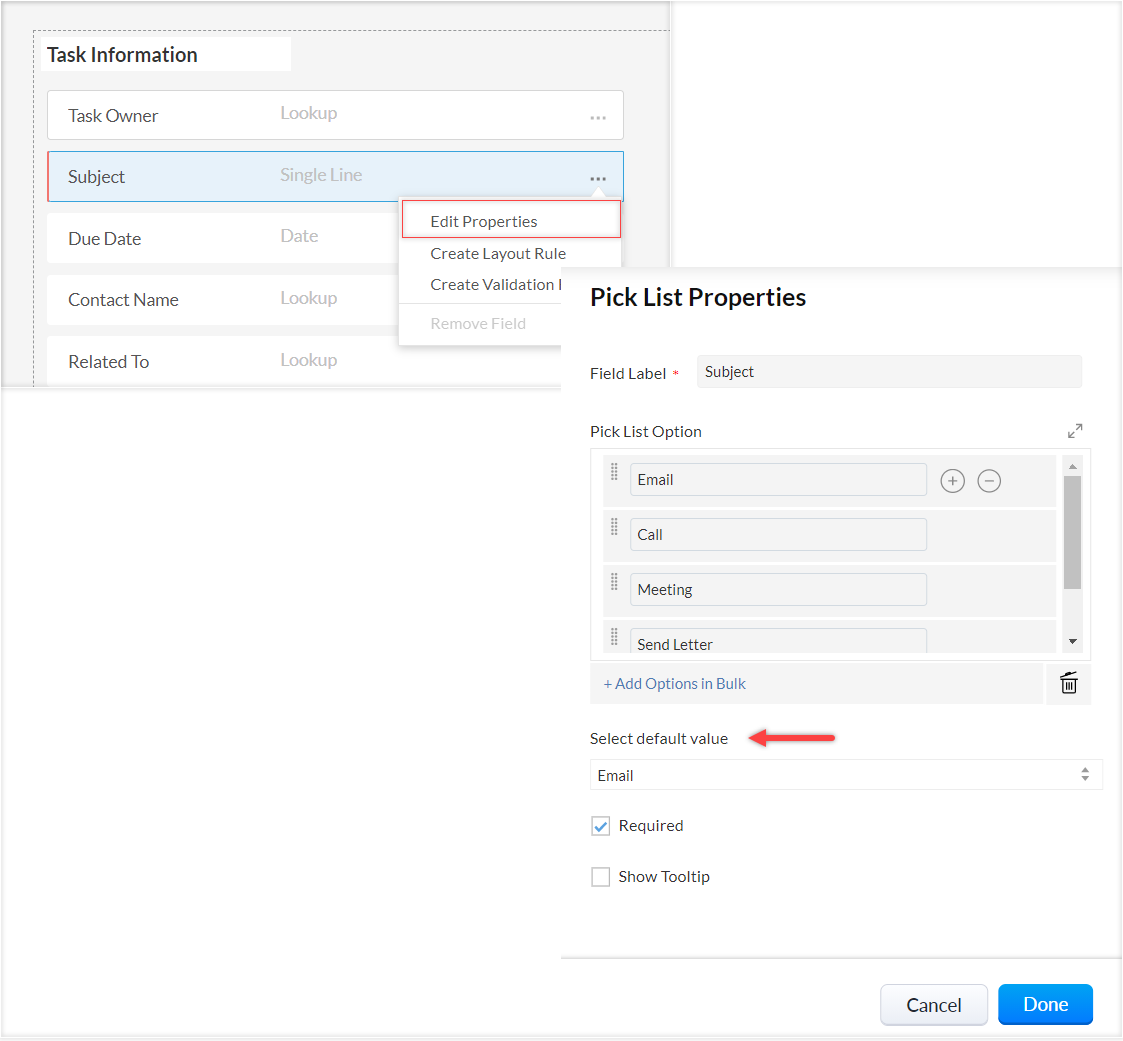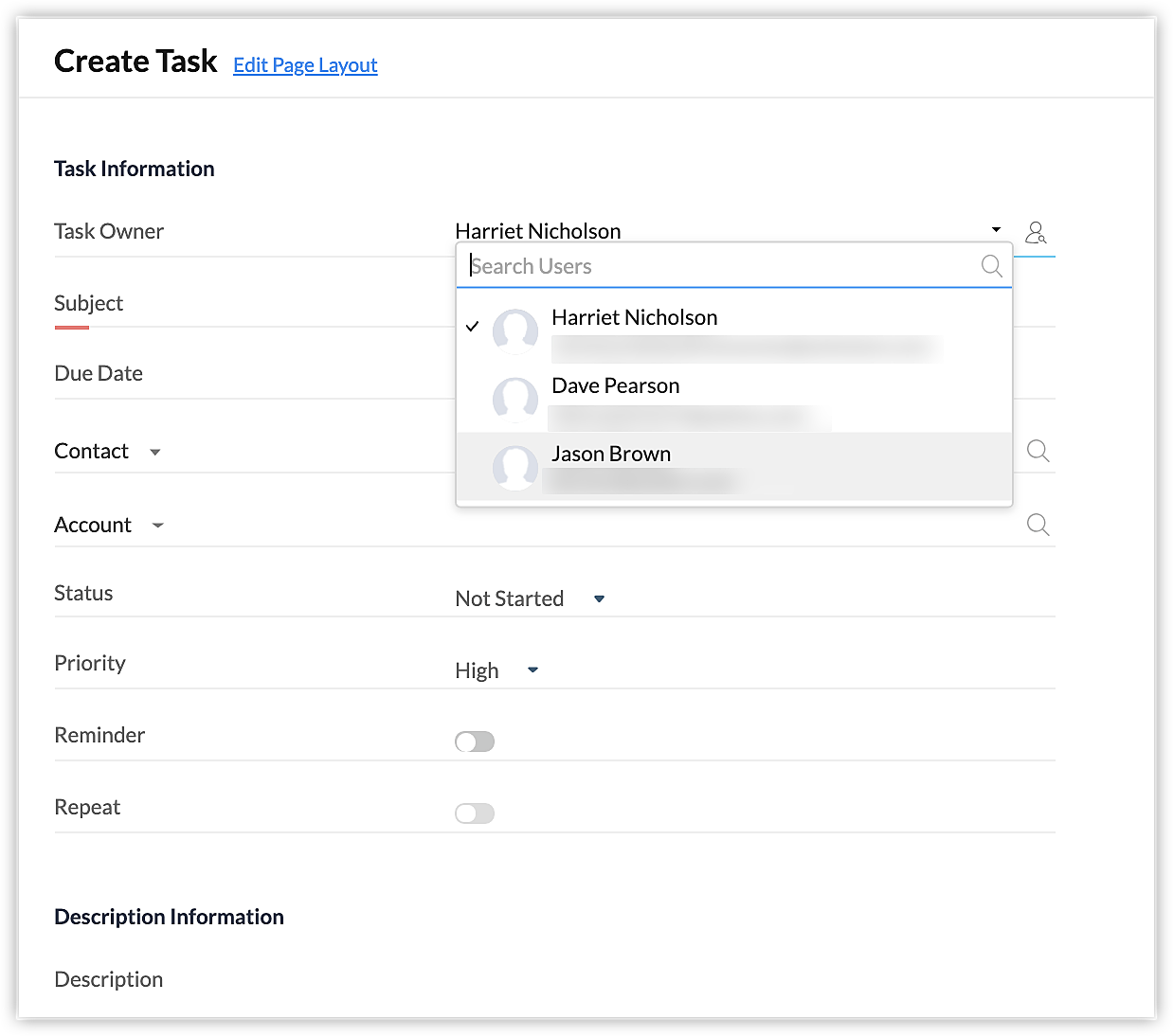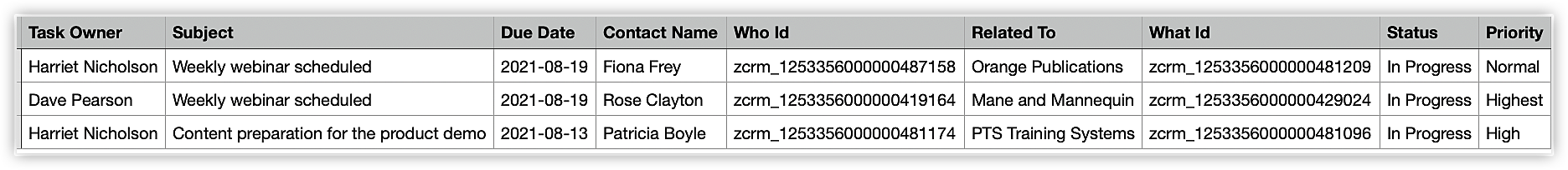 Alternatively, you can add the task details including Task Owner, Contact Name, Subject, etc.., to an Excel sheet and import it into the Tasks module. This method will allow you to import multiple tasks and assign different owners for different tasks. This is especially helpful if you want to assign tasks to other users.