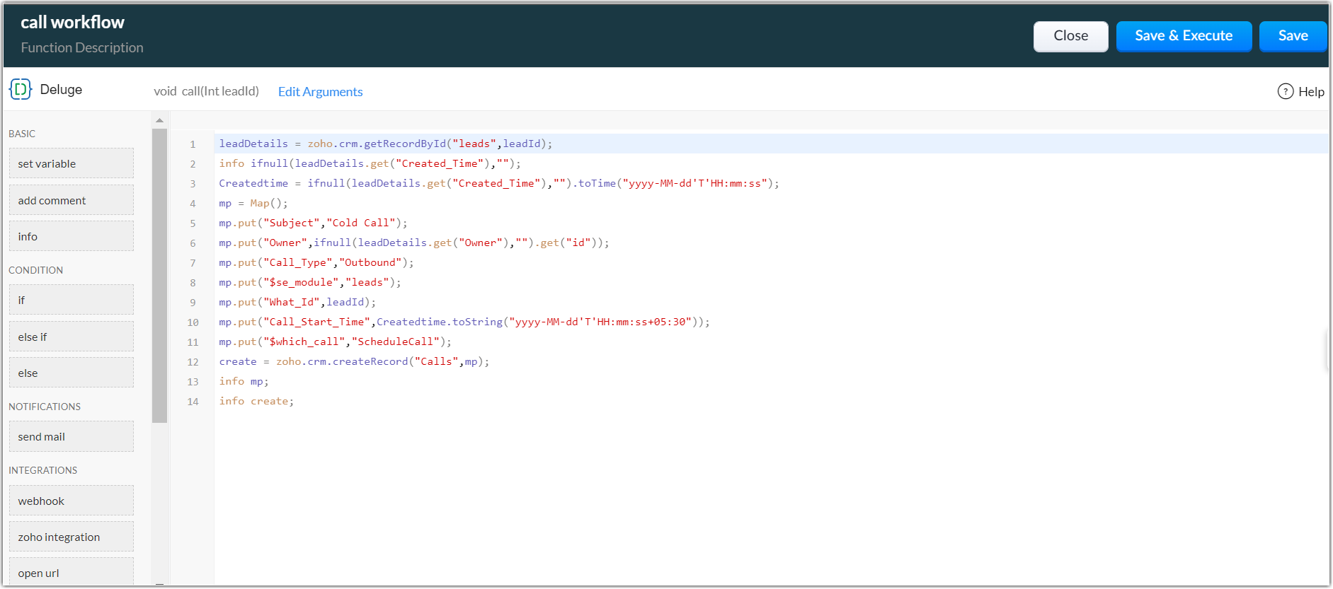 However, you may create a workflow automation for the Calls module to manage calls within CRM efficiently. This will automatically perform actions whenever a call is received, made, missed, or scheduled. This significantly reduces the manual effort required to update or add details about individual calls.