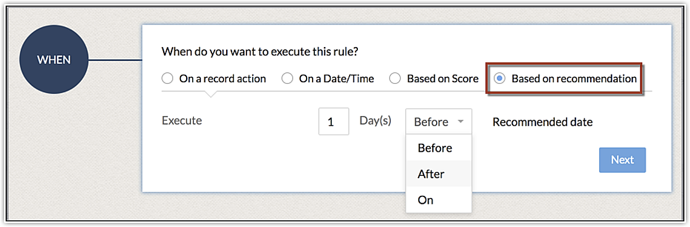 Automatic actions can be performed on the records before, after, or on the day of recommendation.