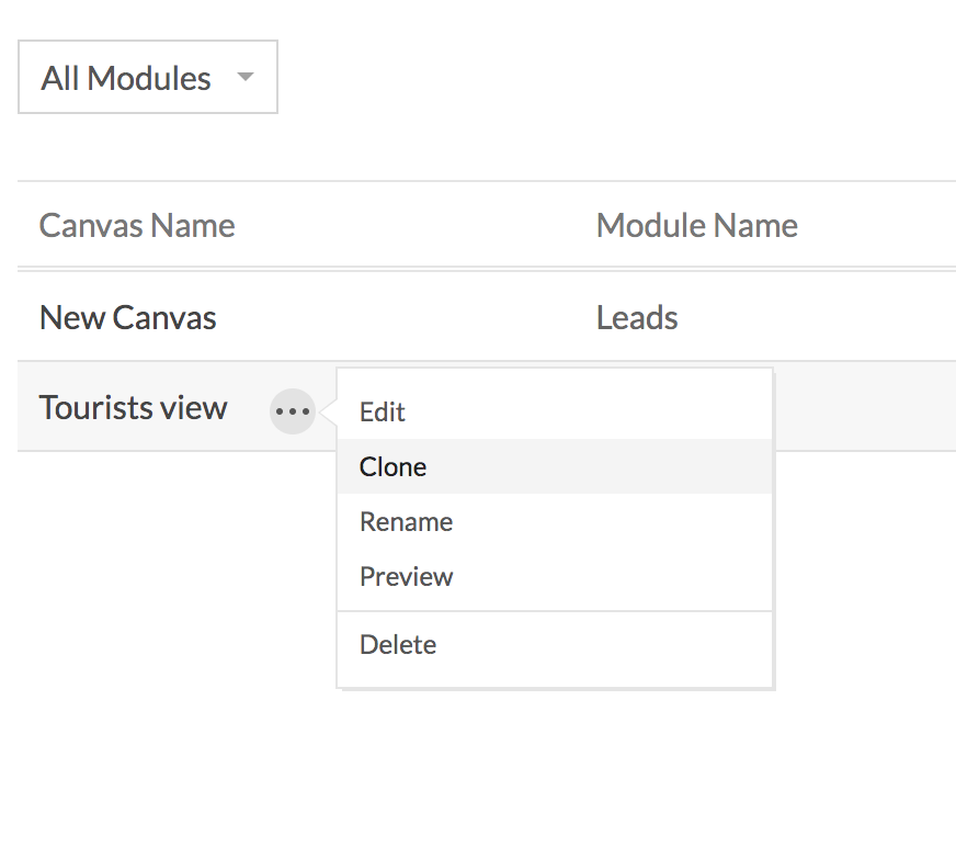 1. In your Zoho CRM account, go to Setup> Customization > Canvas.