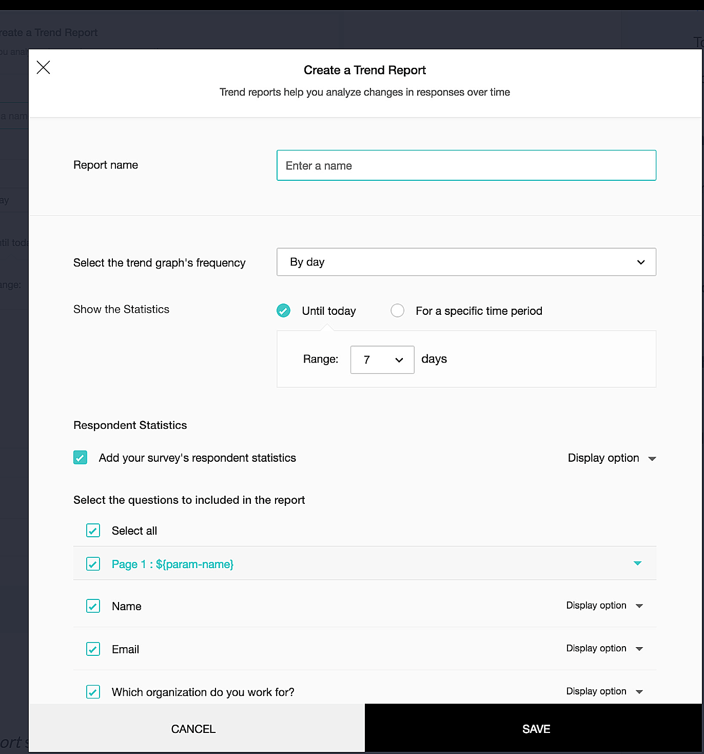 Trend reports are used to compare and analyze trends in aggregate survey responses. To set up a trend report: