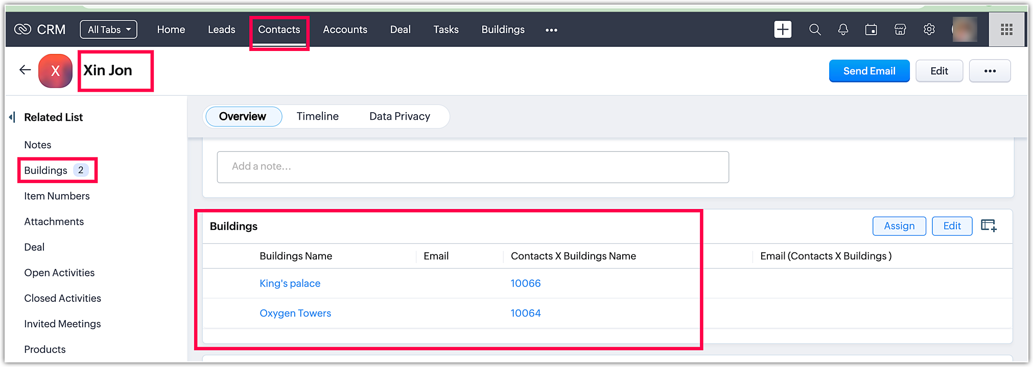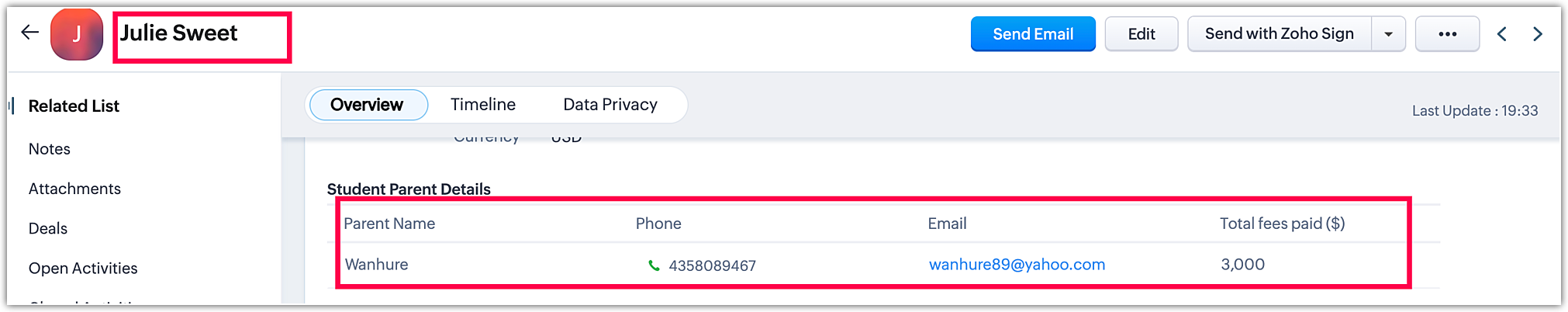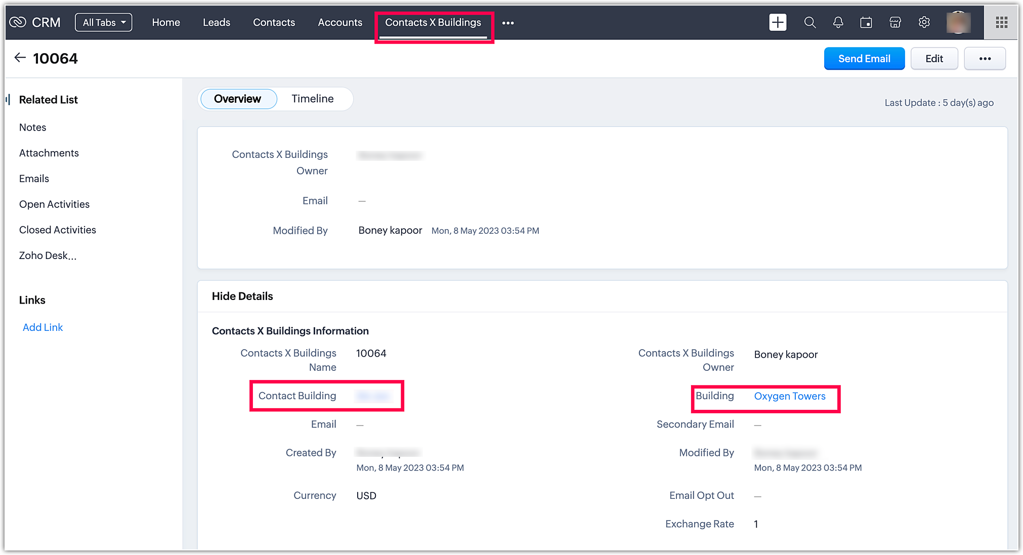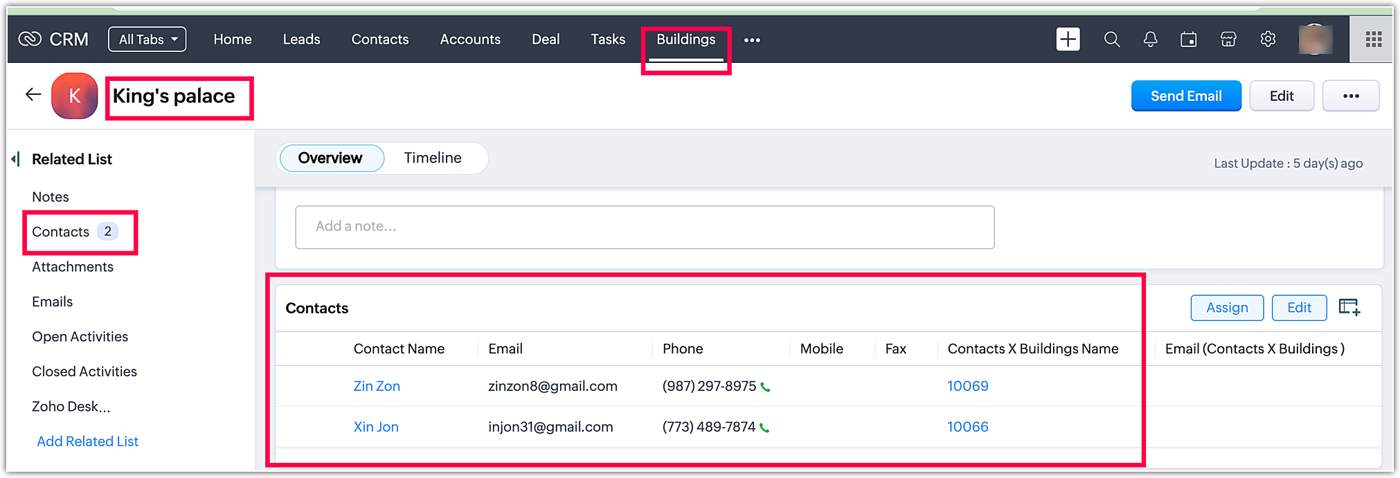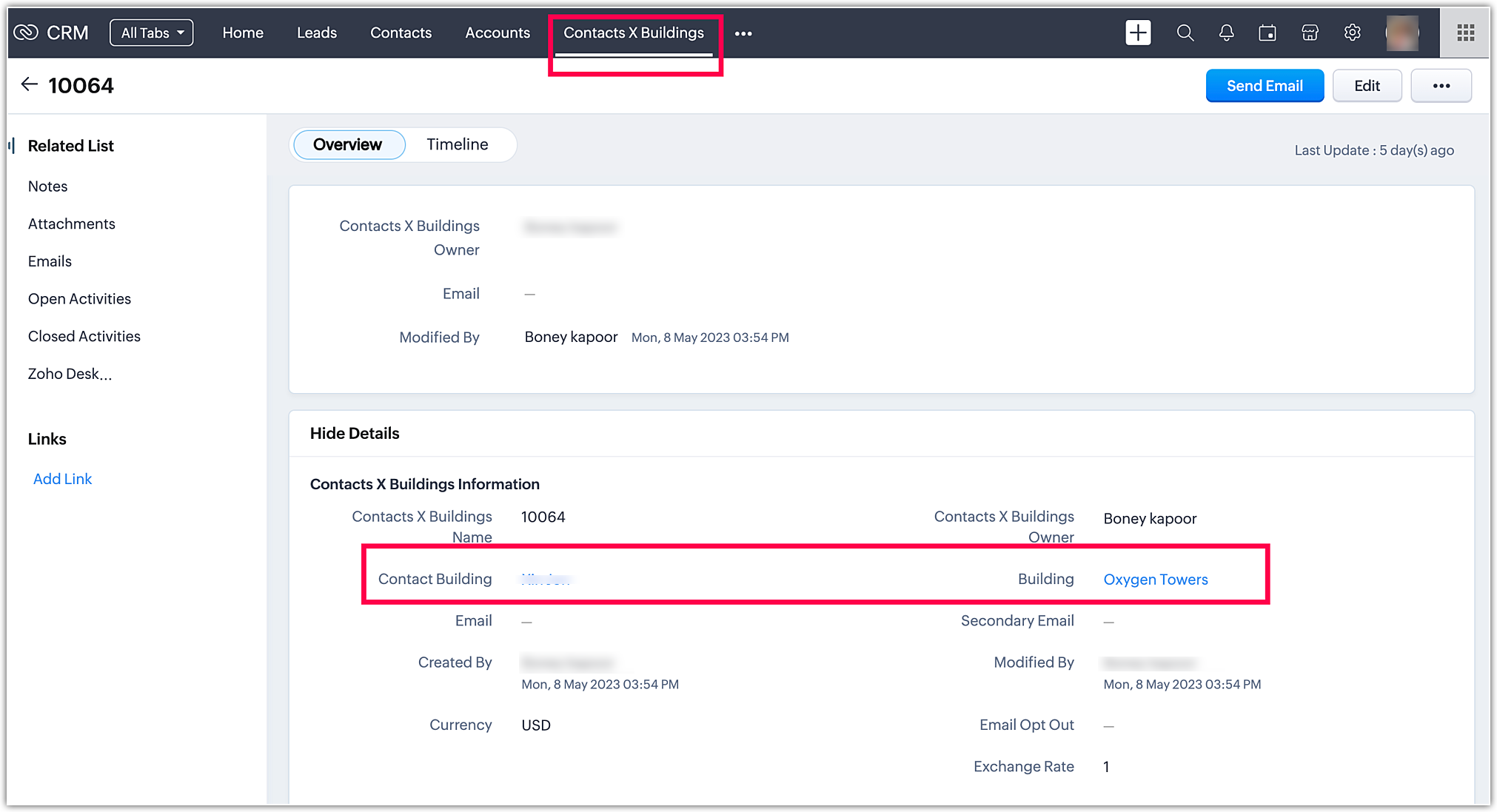 When you go to Account modules and click Zoho. You can find the Contact Sathish. The process is the same for all the modules.