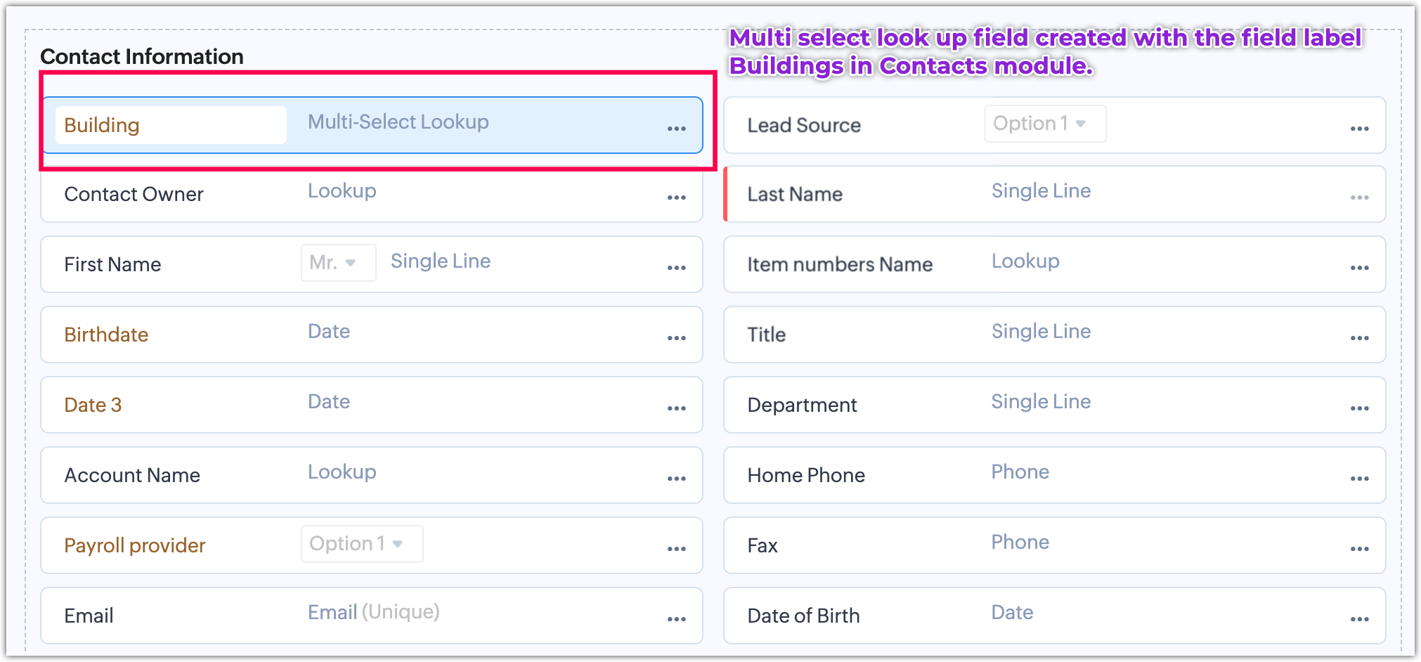 Now, let's create a Single User and Multiple Users lookup fields in the contacts module with names "Person and Agents".
