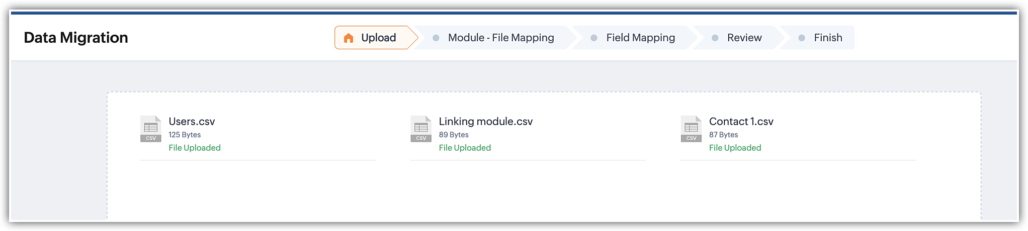 Data can be uploaded in two different ways in Zoho CRM migration widget.
