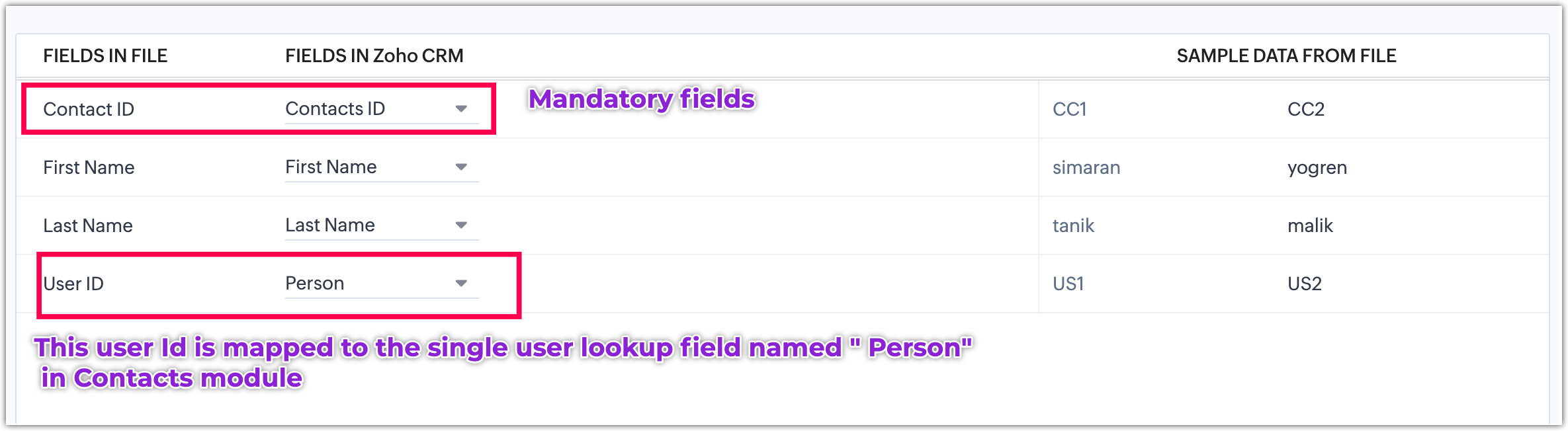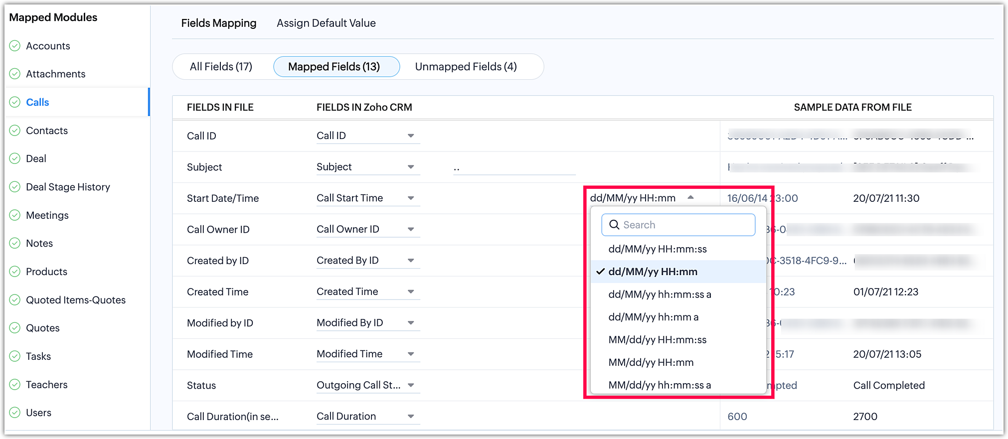 - Perform Field Mapping to map the fields in your files to the corresponding fields in Zoho CRM.
