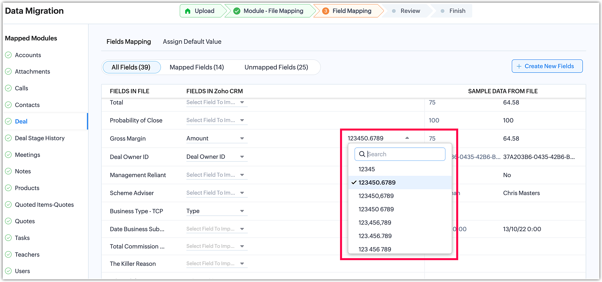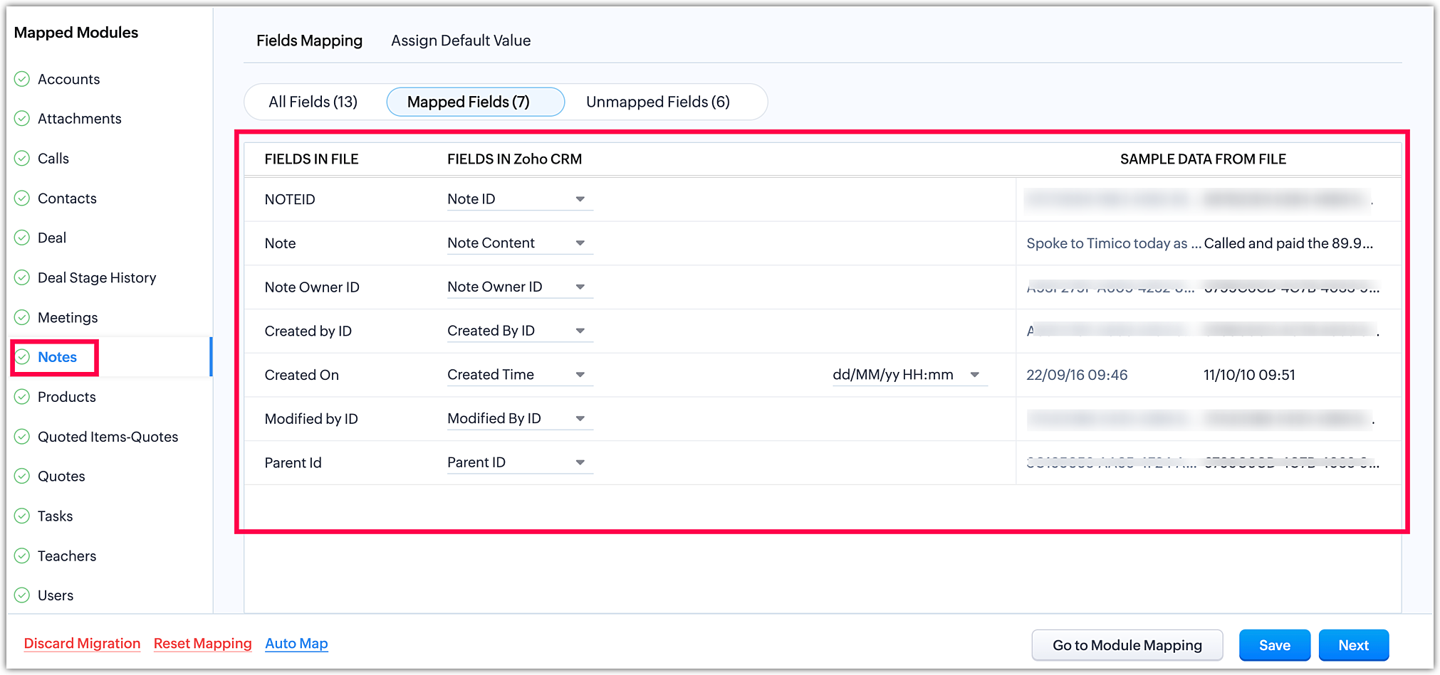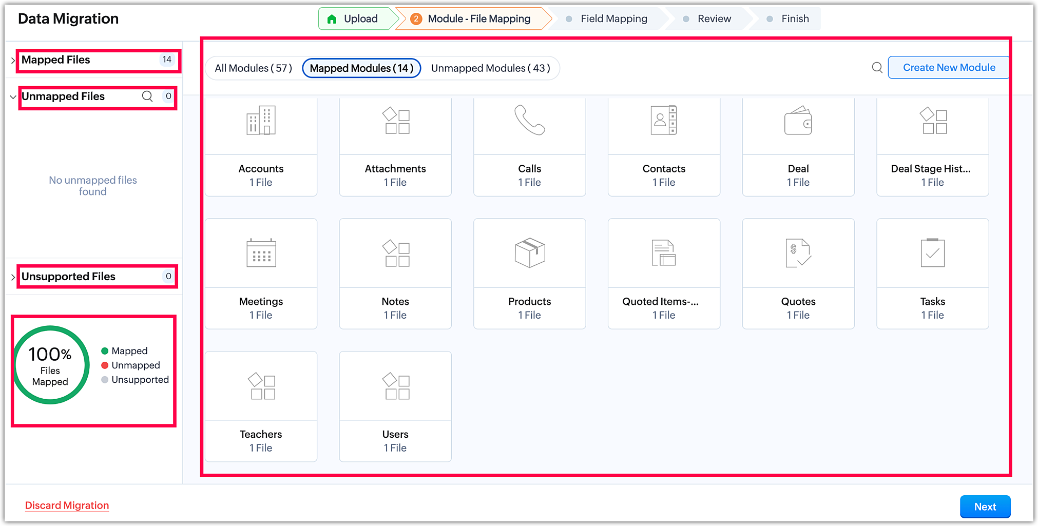 - Proceed with Module Mapping to define how the data aligns with the CRM modules.
