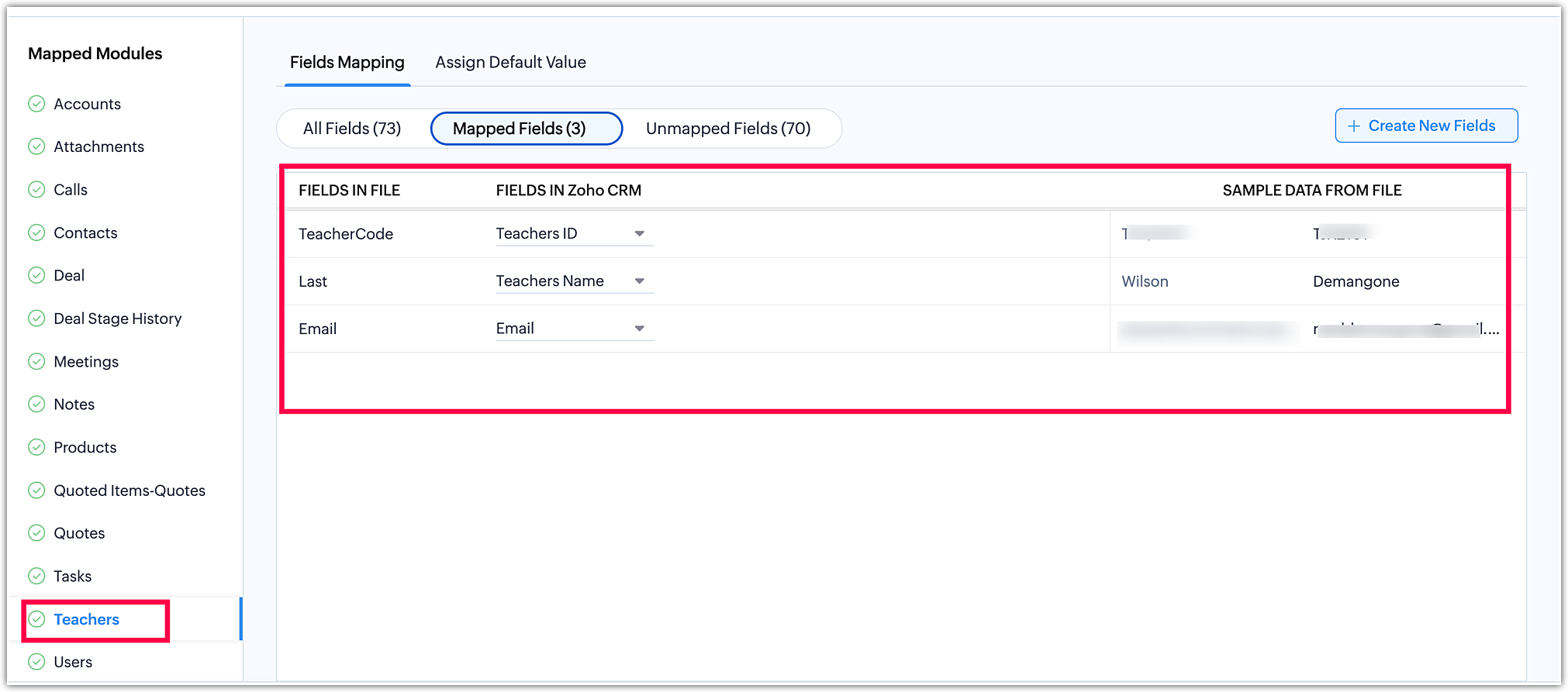 Some fields can be automatically mapped if they match the fields in the module. The auto-mapping feature applies to standard CRM fields present in the Import Widget page (e.g., Salesforce, Zoho, ACT, etc.).