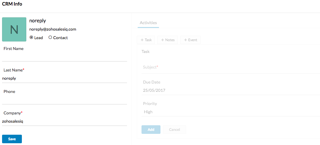 During lead conversion, open activities related to that particular lead get automatically associated with the corresponding account, contact and deal.