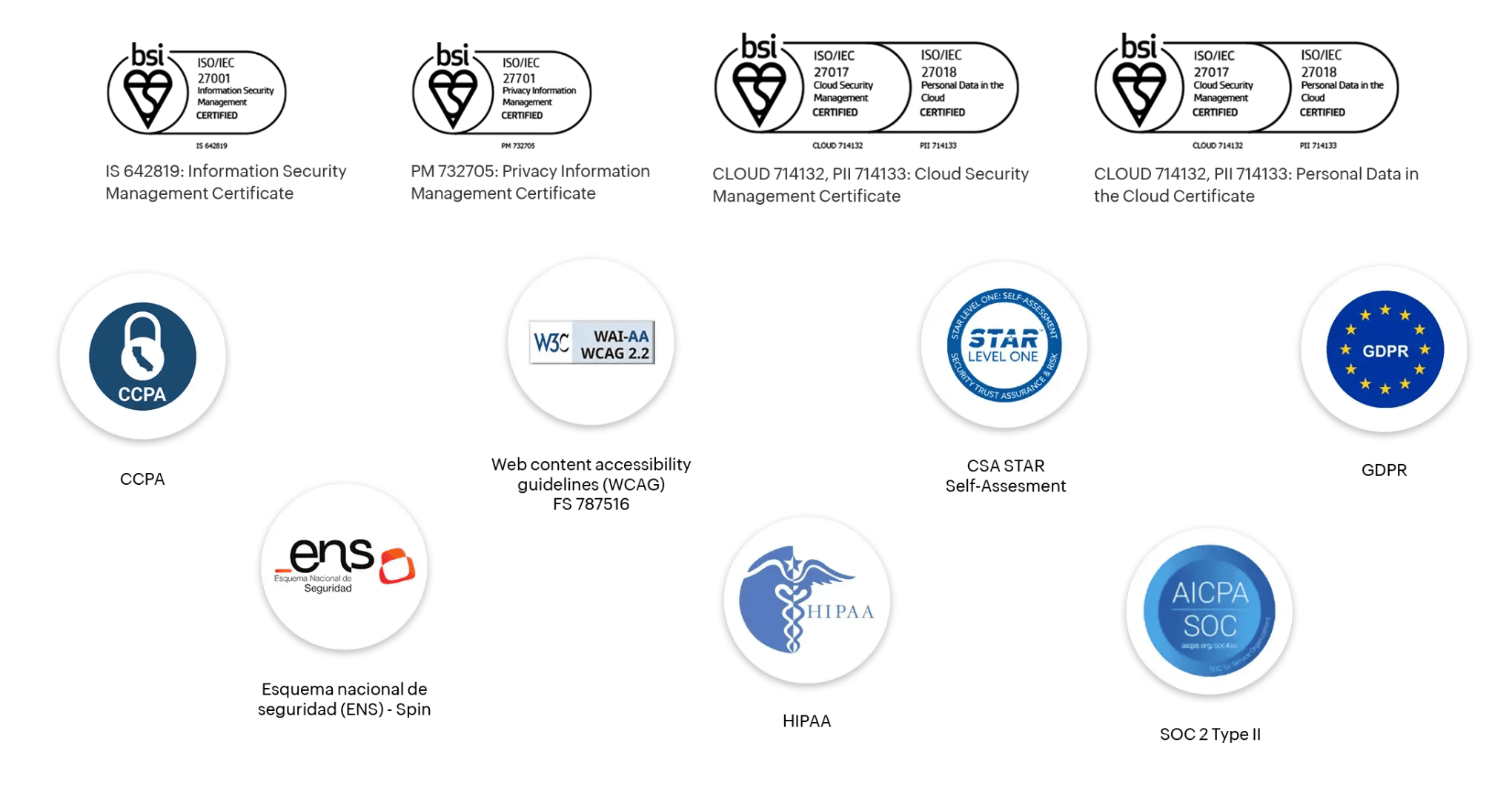 Zoho CRM maintains industry-recoginized certifications including ISO/IEC 27001, ISO/IEC 27017, and ISO/IEC 27018, and we undergo SOC 2 Type II independent audits. These certifications validate Zoho's cloud security controls and information security management, and ensures protection of personally identifiable information (PII).