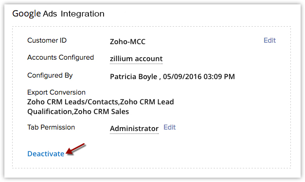 To view Google Ads data in Zoho CRM