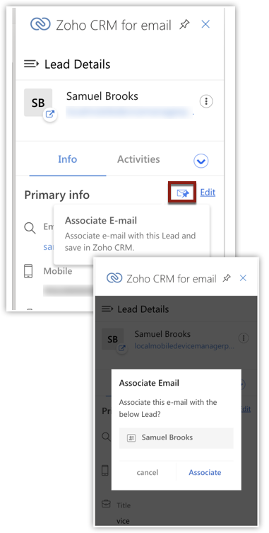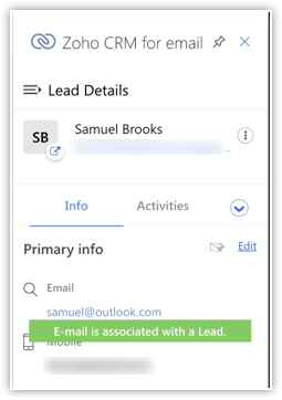 If the user is not added as lead or contact, Add Lead or Contact option will be displayed.
