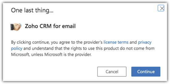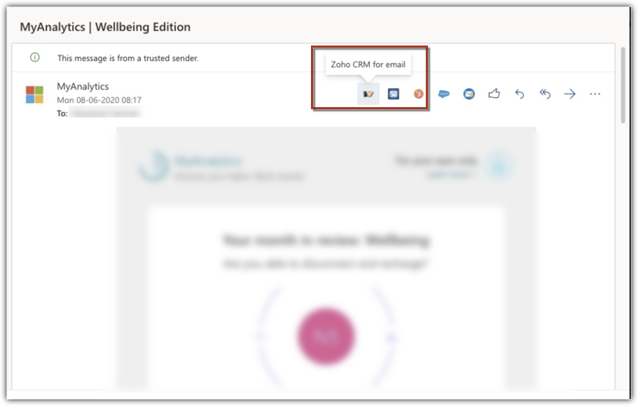 Once the installation is complete the Zoho CRM for Email add-in will be pinned in your email for quick access.