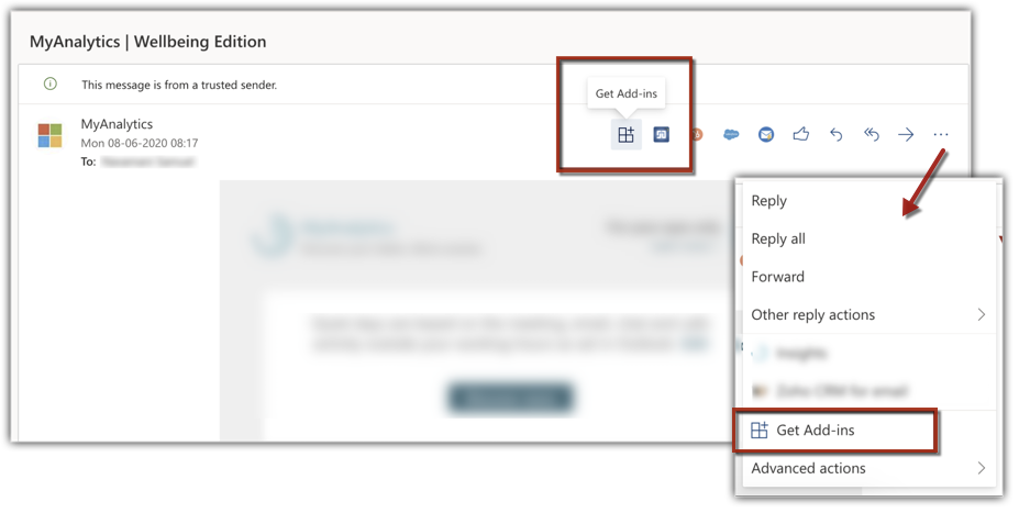 Alternately, click the More (...) icon and select Get Add-ins from the dropdown list.