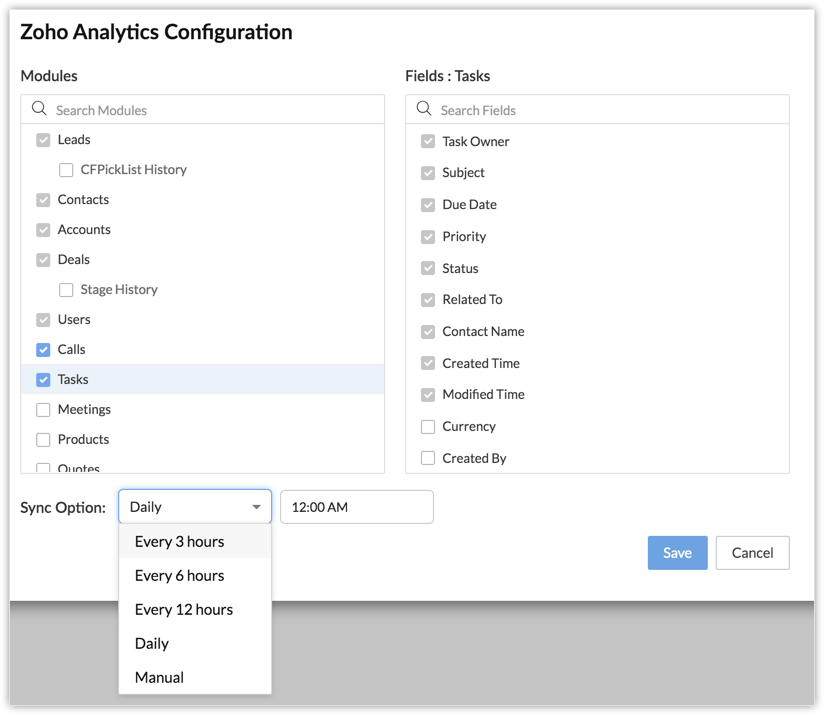 Once the Advanced CRM Analytics is configured, you get access to 70 plus ready made reports and dashboards. In addition to this, you can also create reports as per your requirement, using the drag-and-drop report builder of Zoho Analytics. See Also Creating Ad-hoc Reports using Zoho Analytics