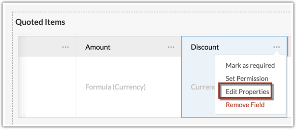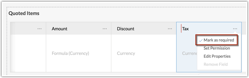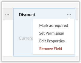 - Click the More icon in a field to Edit properties, Mark a field required, Set field permission or remove the field.