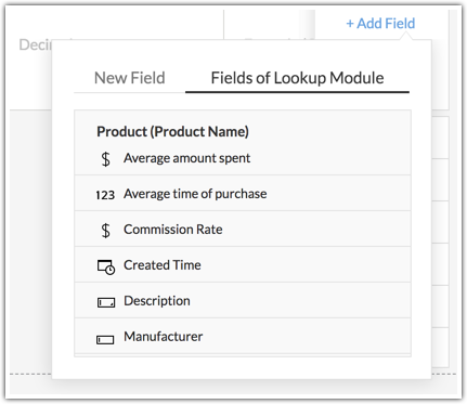 - Click Fields of Lookup module to select fields from the Products module.