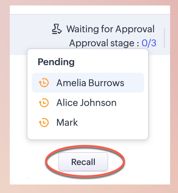 Record Owners/ Submitters | The Recall option will be visible directly inside the record (just below the list of approvers). |