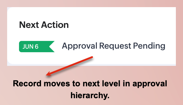 Multi-Level Approval: The record moves to the next level in the approval hierarchy. The next set of approvers is notified.