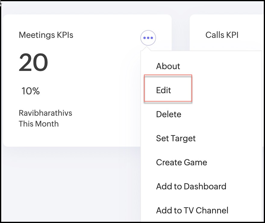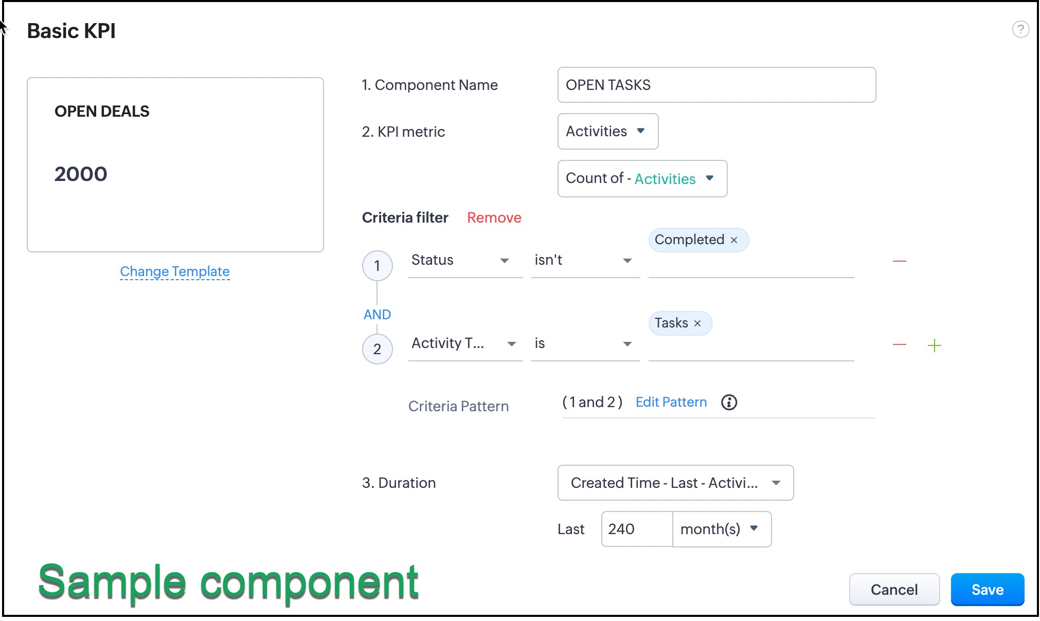 - Refer to the screenshot to recreate the dashboard component in calls, meetings, and tasks accordingly.