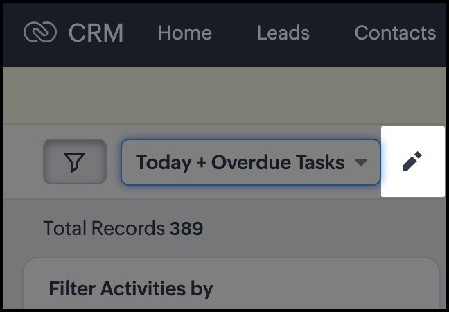 - Go the relevant Tasks, Meetings or Calls module where you want to create the custom view.