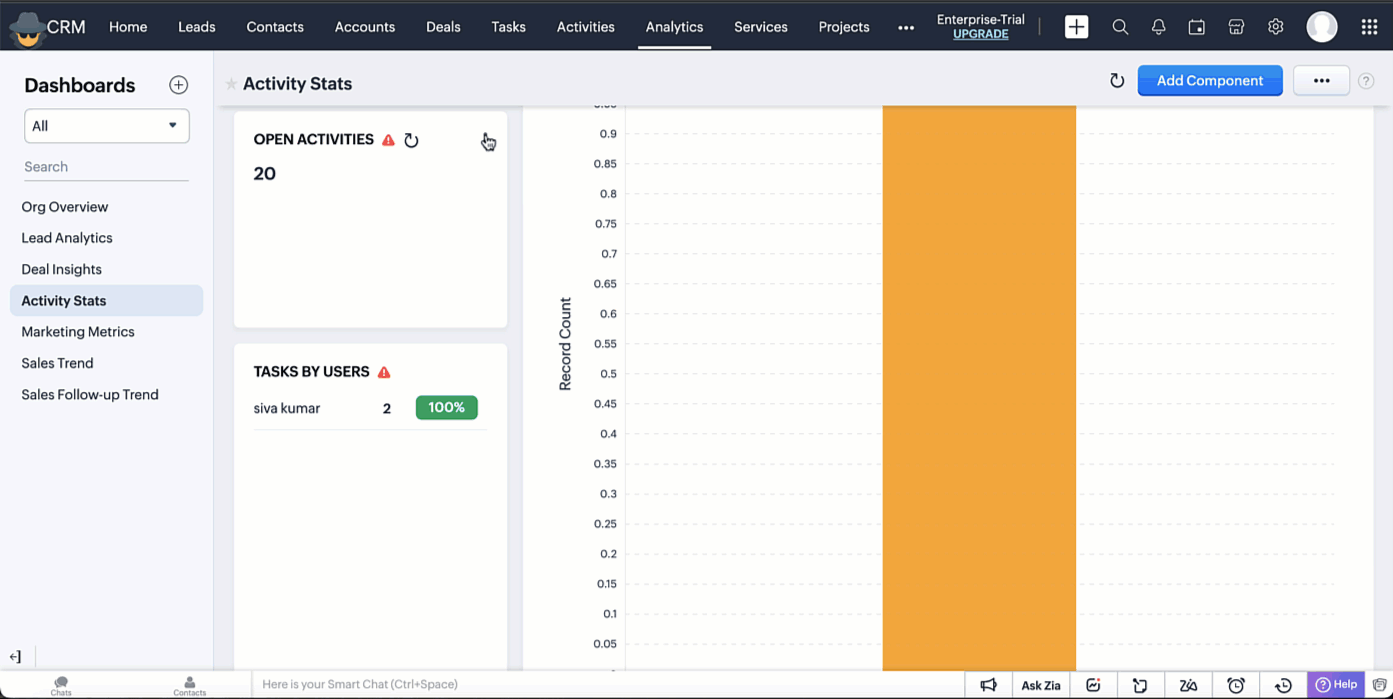 - Navigate to Activity Reports page and view the reports associated with the activities module.
