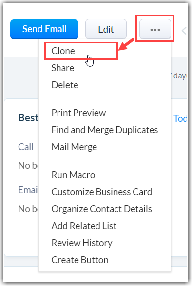 1. In the Contacts tab, click a particular contact that you want to be cloned.