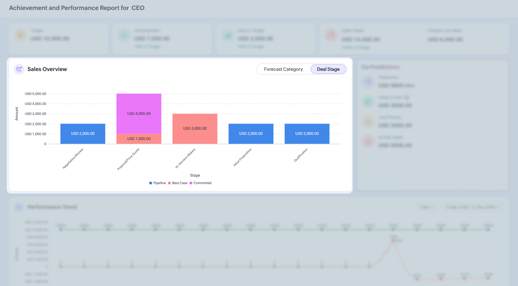 For example, if the total number of deals is more than the targeted number, then you must gear up inventory as the forecast points to increased selling. Similarly, if the number is way below the target, it would be best to avoid pouring funds into procuring more material.