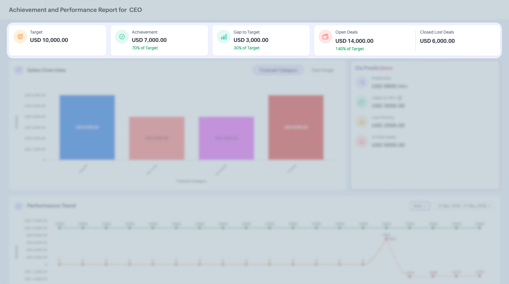 - Once the forecast period is completed, the open deals and achieved amount will be locked. Any changes done to the open deals once the forecast period is completed will not be reflected in the target achievement report.