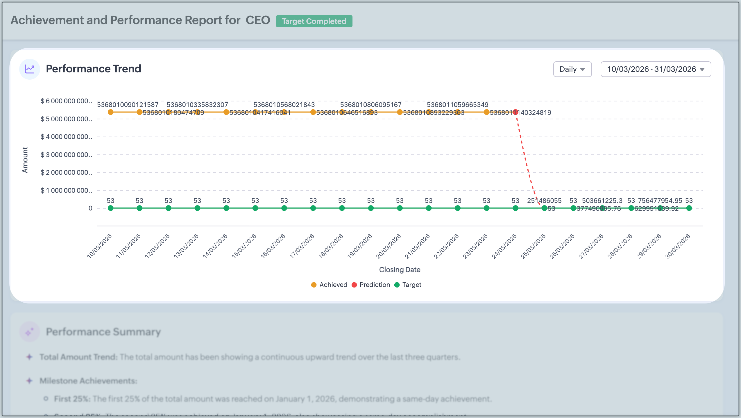 - You may notice a data mismatch if you open the target achievement report before the auto-sync.