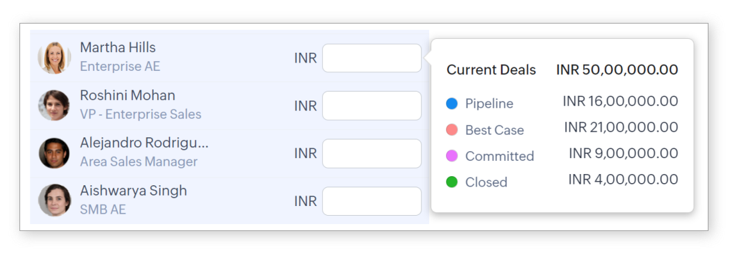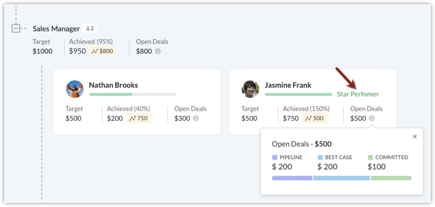- The manager and the user can quickly refer the Judged as "In" deal revenue for each user.