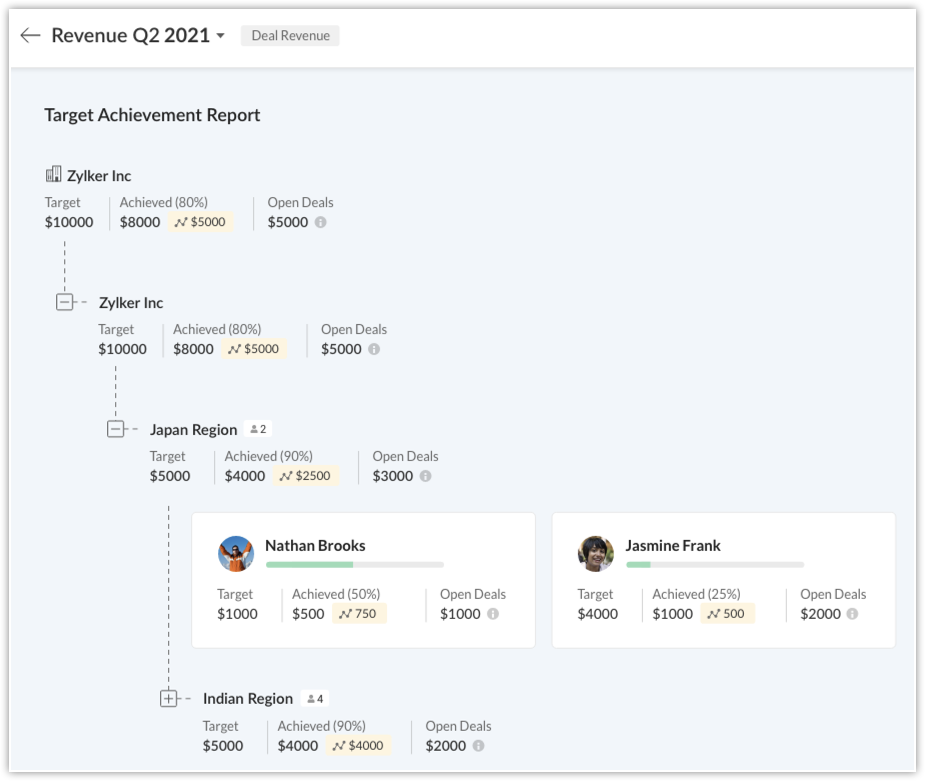 - If your company has different product lines or region-based selling and thus adheres to territorial hierarchy, each territory, sub territory, and users within them will be allotted a certain target.