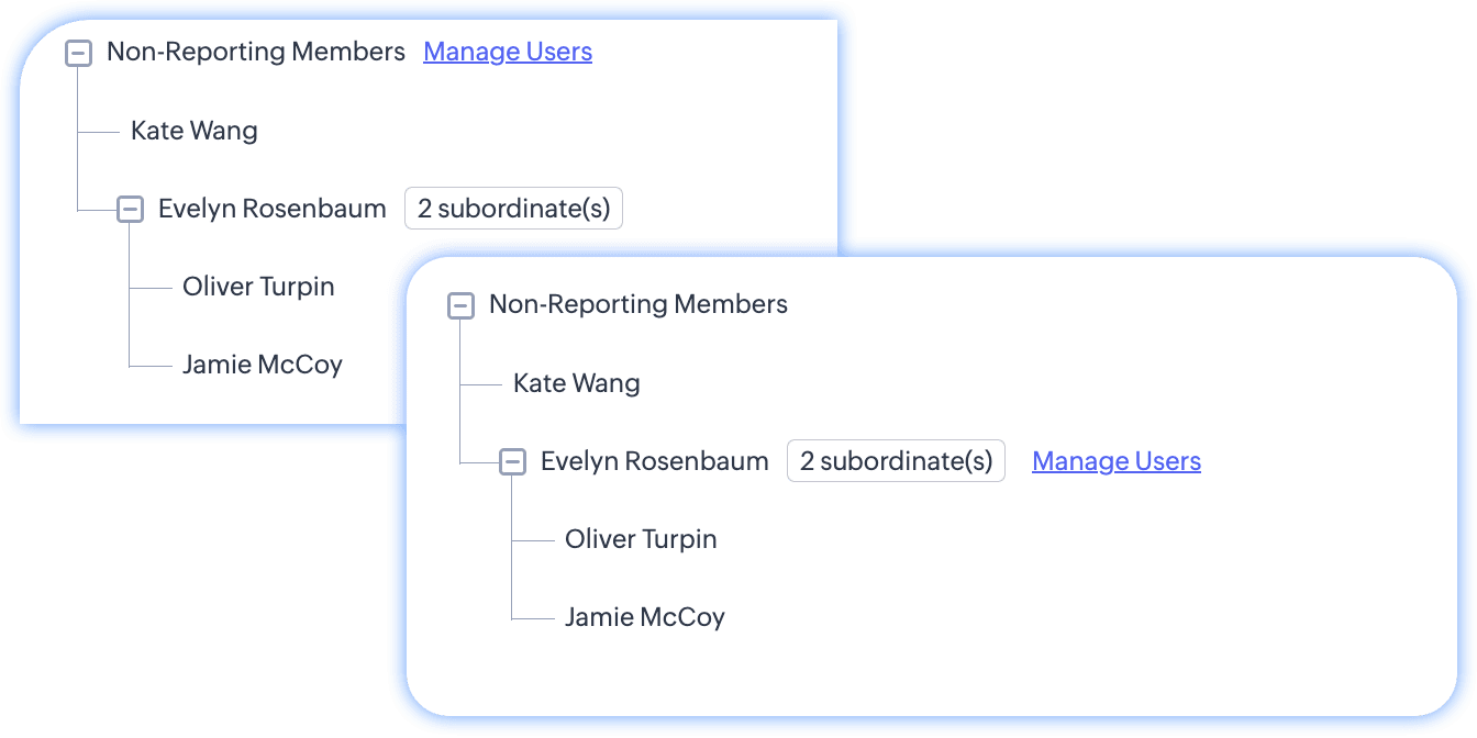 - In a reporting-based hierarchy, exclusion happens individually for each user.
