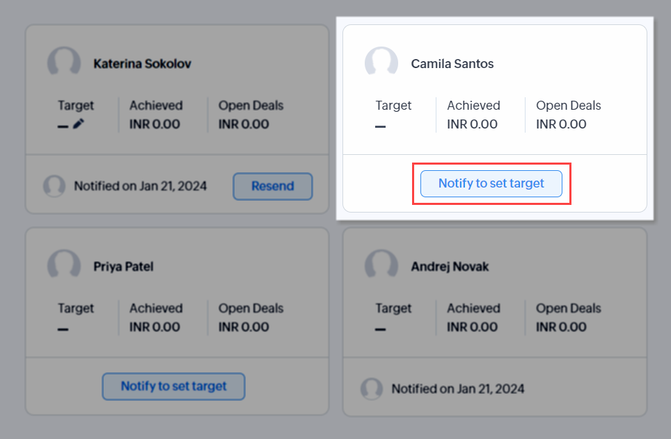 In addition to this, if a user, role, or a territory is excluded, then the forecast report will show the respective card as excluded with no targets allocated.