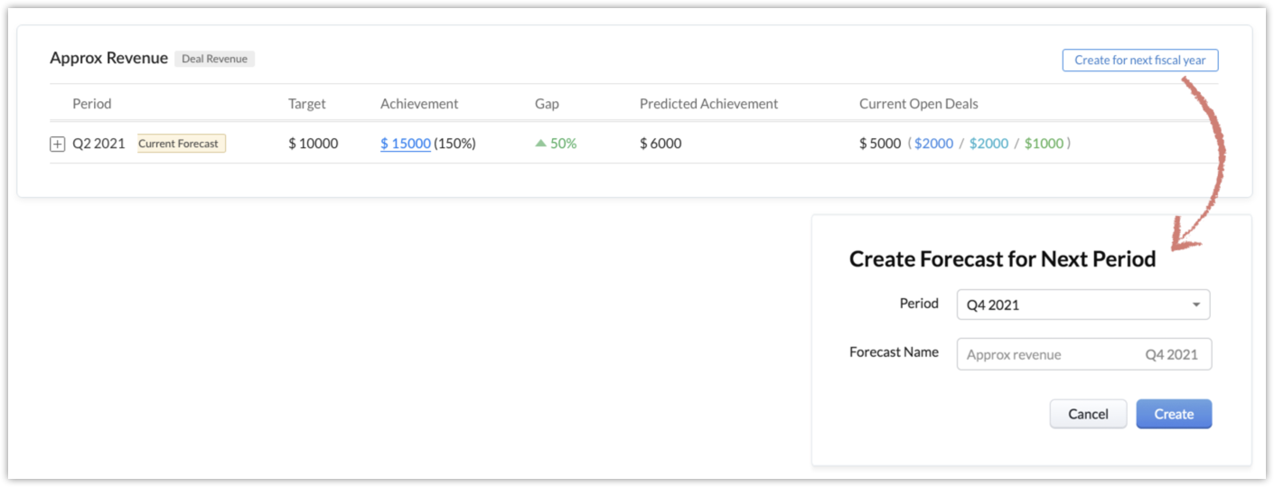 You can create multiple forecasts in Zoho CRM by using the following parameters individually or in combination: