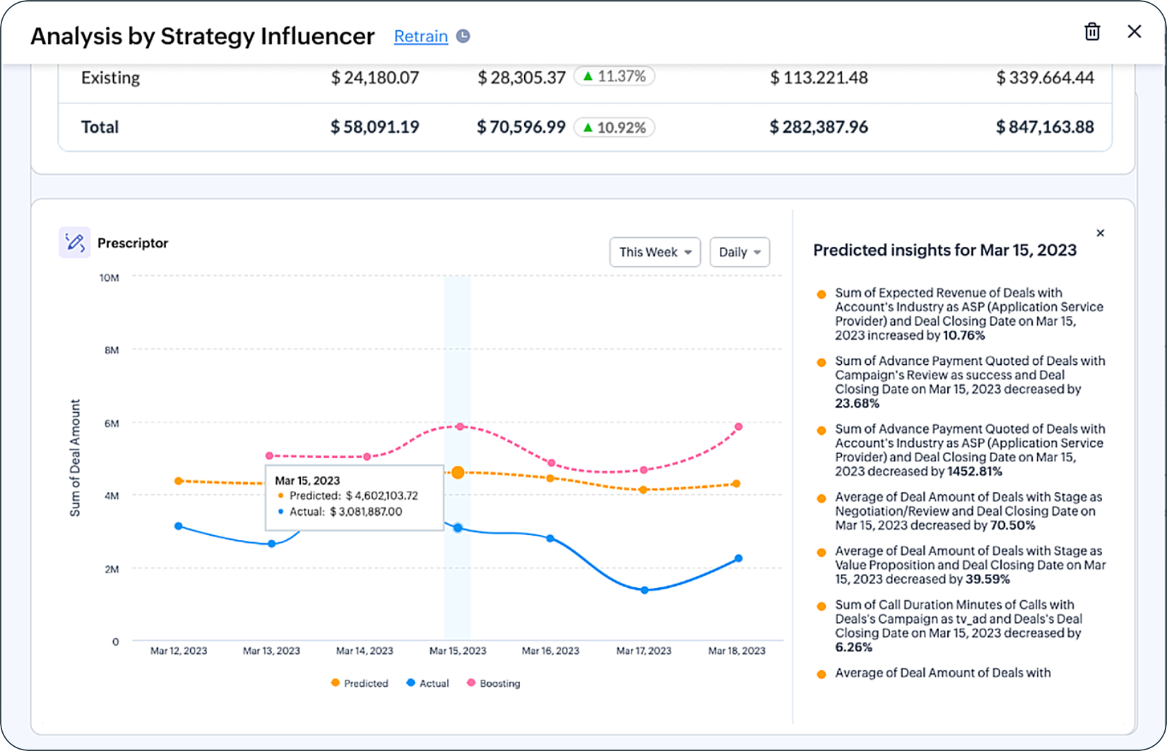 Upon clicking this, you will have the option to get insights of the Strategy Influencer in forecasts in the following five components: