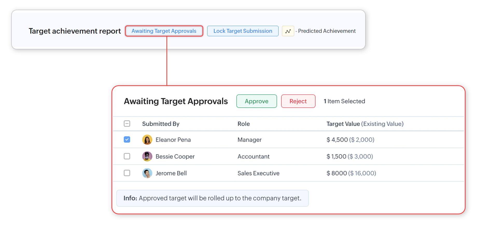 - If your company follows a reporting hierarchy, then the target can be distributed among individuals and their reporting managers.